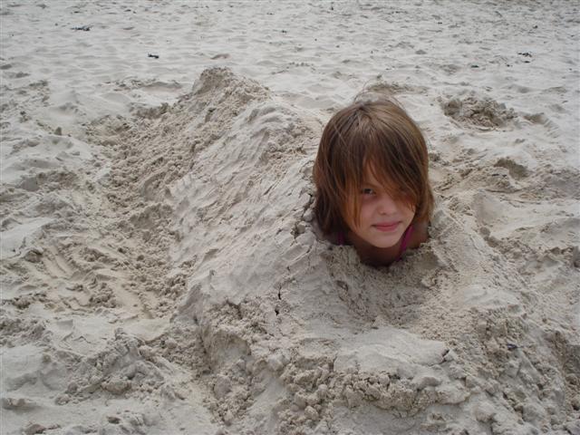 Lekker onder het zand op het strand
