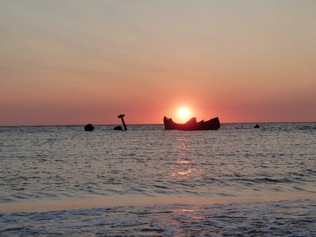 Zandsuppletie bij zonsondergang